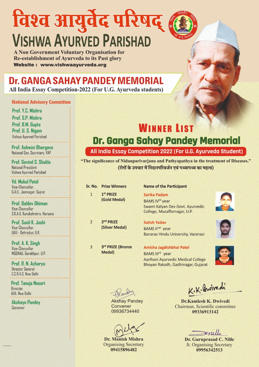 Pt.. Ganga Sahay Pandey Memorial UG Essay Competition Awards ceremony was hosted on 27th Feb 2023 at Deen Dayal Hastkala Shankul Varanasi during AyurYog Expo 2023.