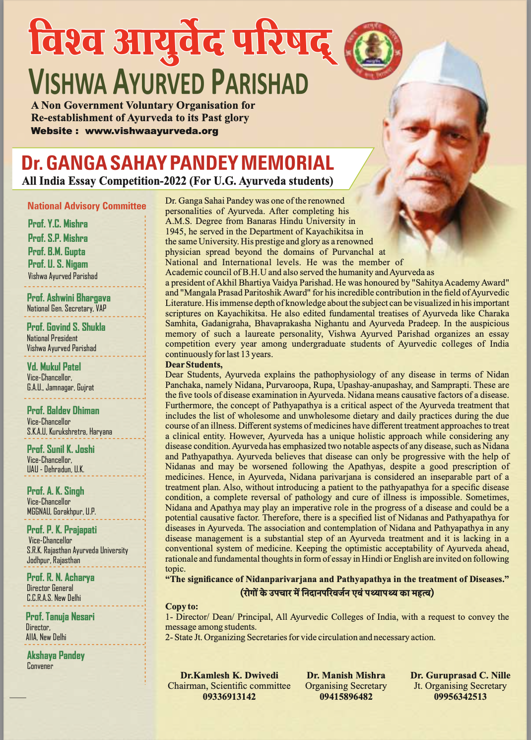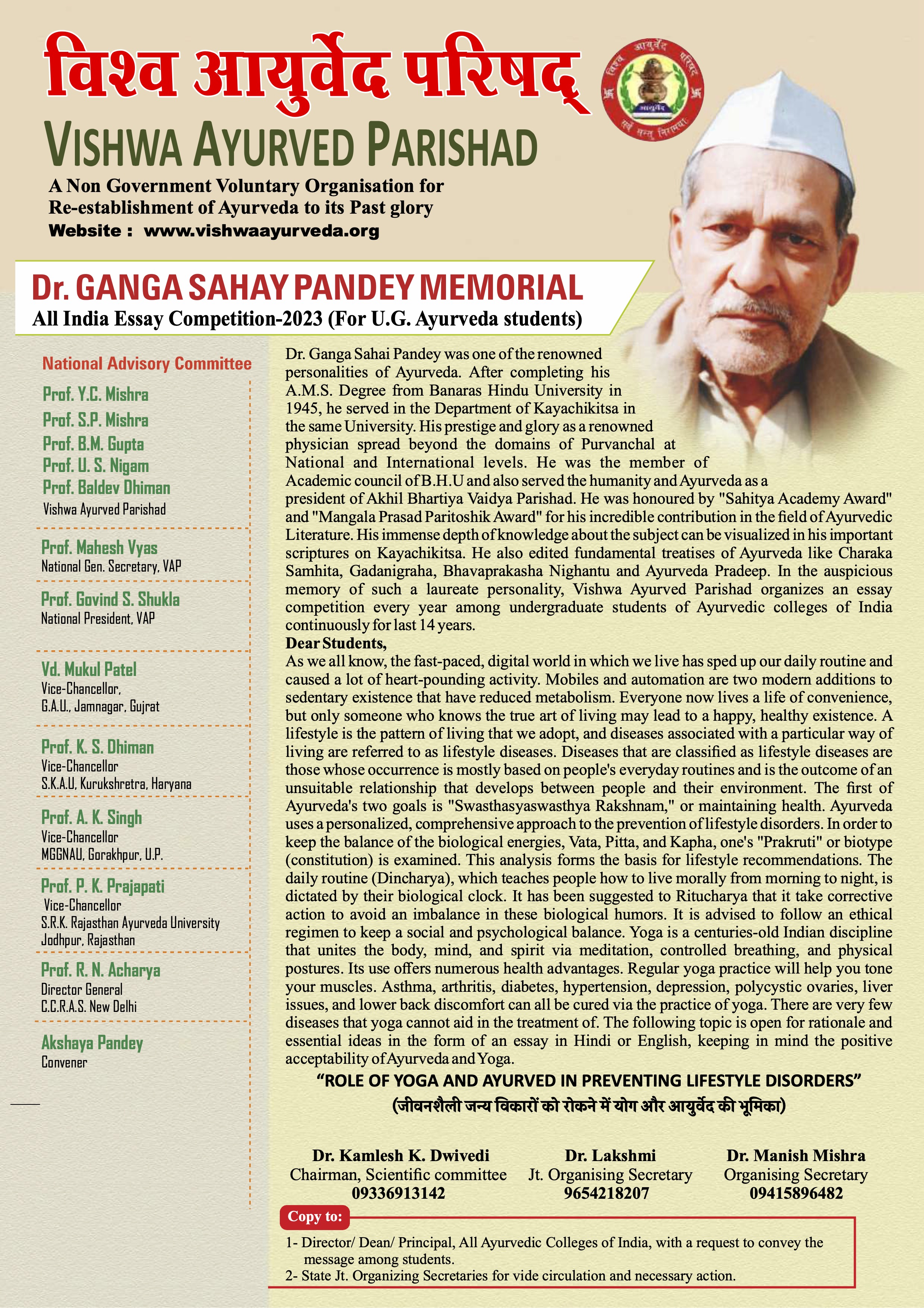 Dr. Ganga Sahay Pandey Memorial All India Essay Competition-2023 (For U.G. Ayurveda students)