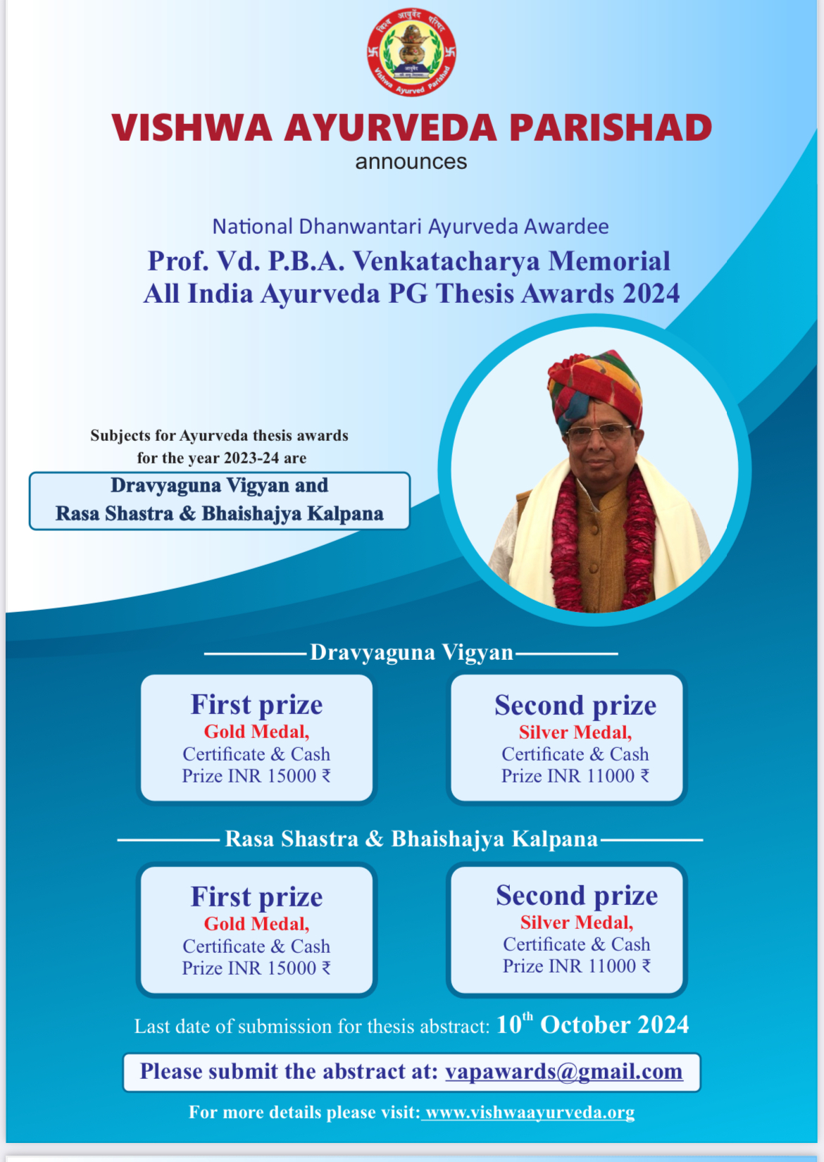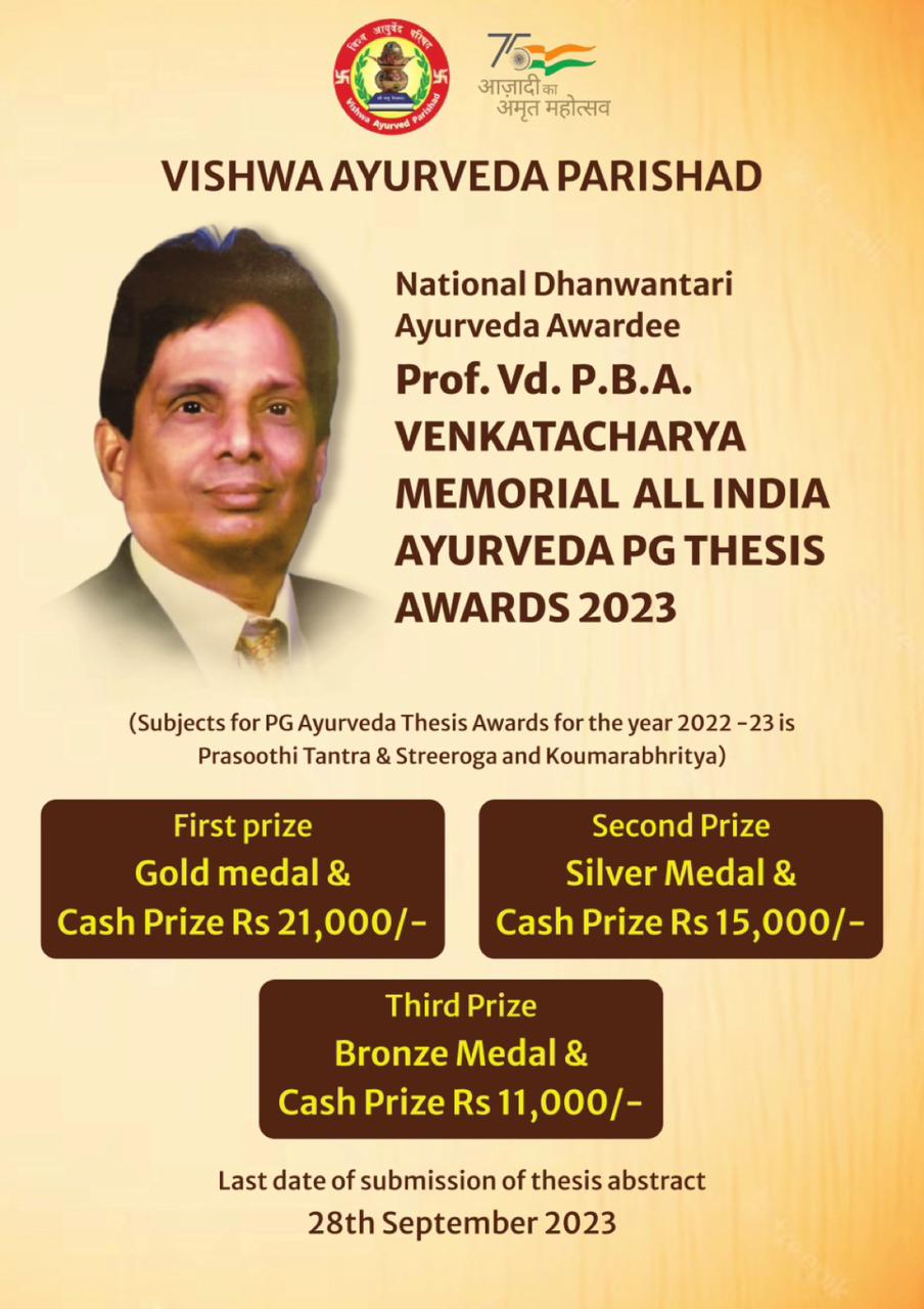 Prof. Vd. P.B.A. Venkatacharya Memorial All India Ayurveda PG Thesis Awards 2024