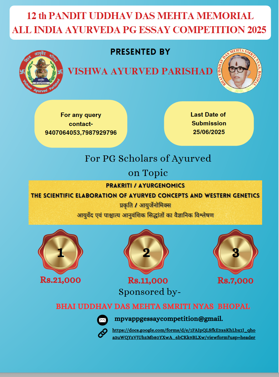 BHAI UDDHAV DAS MEHTA MEMORIAL ALL INDIA AYURVED PG ESSAY COMPETITION 2024- Result